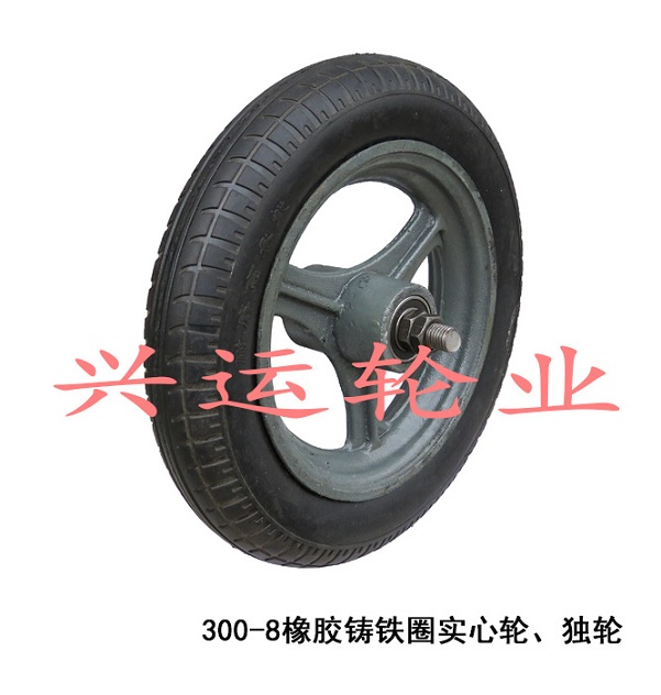 300-8鑄鐵圈橡膠實(shí)心輪、獨(dú)輪興運(yùn)輪業(yè)